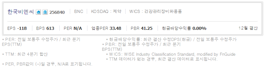 한국비엔씨 ( 256840 : 코스닥 ) - 11월 5일 장 마감 기준