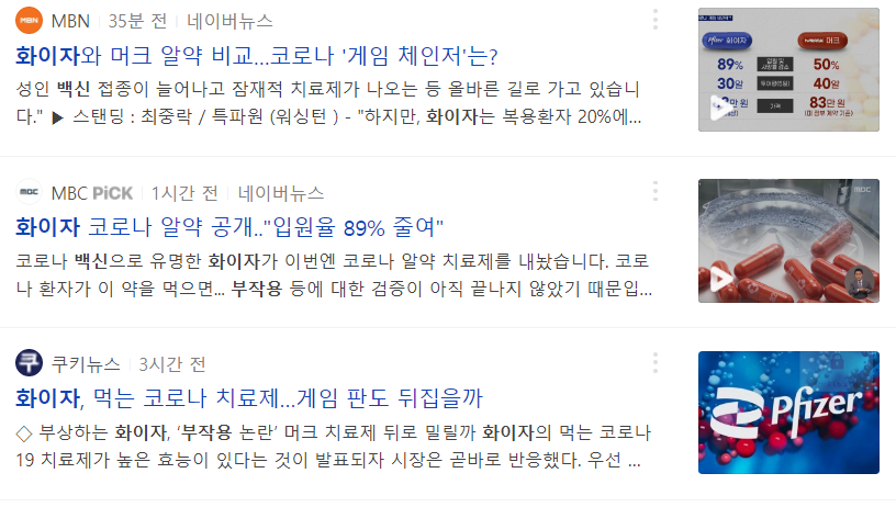 화이자는 중증으로 진행될 가능성이 높은 코로나 확진자를 상대로 한 임상 시험 결과, 증상 발현 사흘 내 치료제를 투여한 경우 입원·사망 확률이 89%, 증상이 나타난 지 닷새 안에 약을 복용할 경우 이 확률이 85%까지 감소하는 것으로 나타났다고 밝혔다. 임상 시험 결과에 따르면 '팍스로비드'라는 이름이 붙은 화이자의 코로나19 치료제가 효과가 뛰어나다고 발표했습니다.