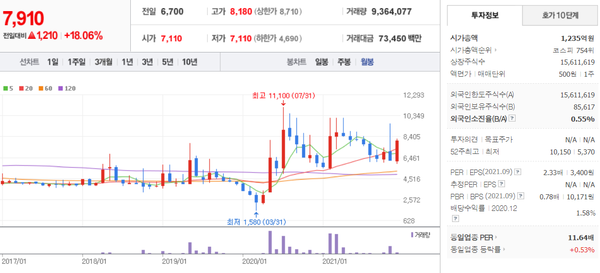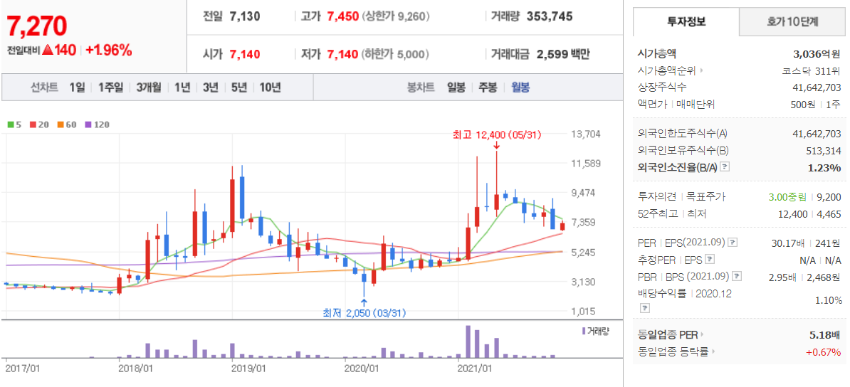 포스코엠텍 - 월봉 / 네이버금융 참고