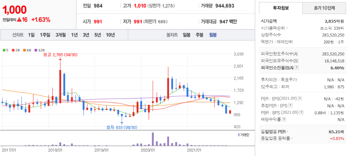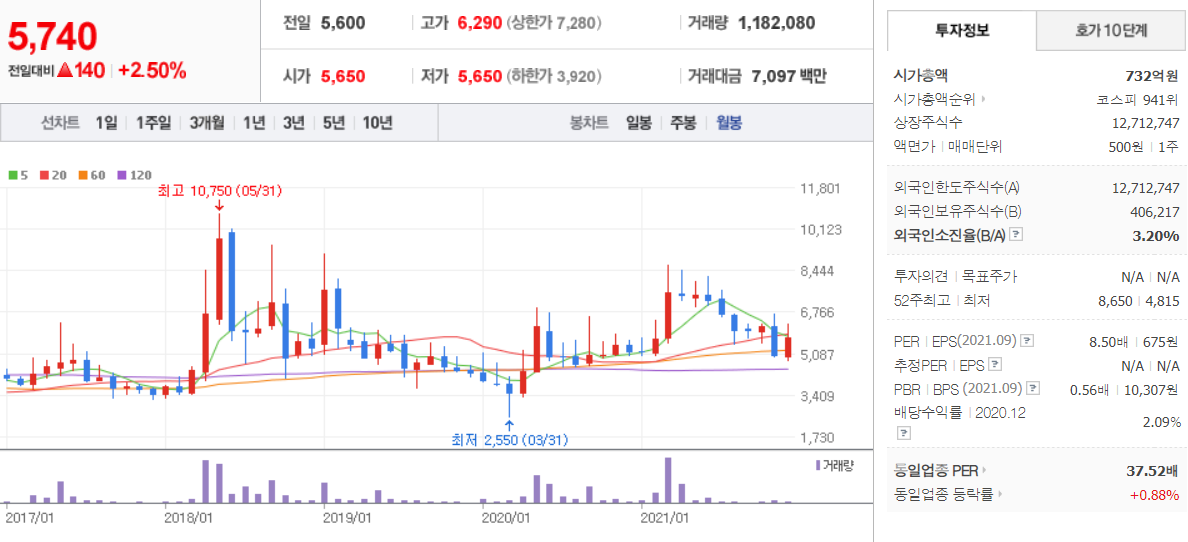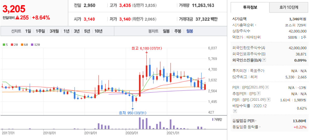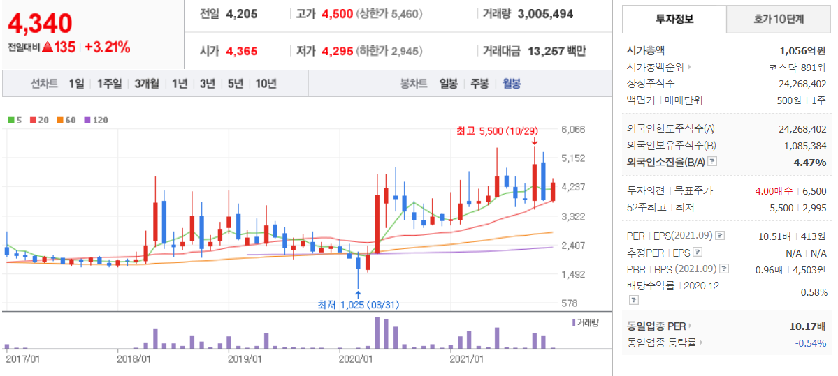 유니온머티리얼 - 월봉 / 네이버금융 참고