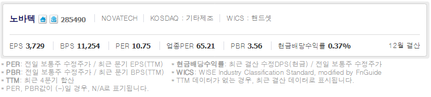 노바텍 ( 285490 : 코스닥 ) - 12월 7일 장 중 기준