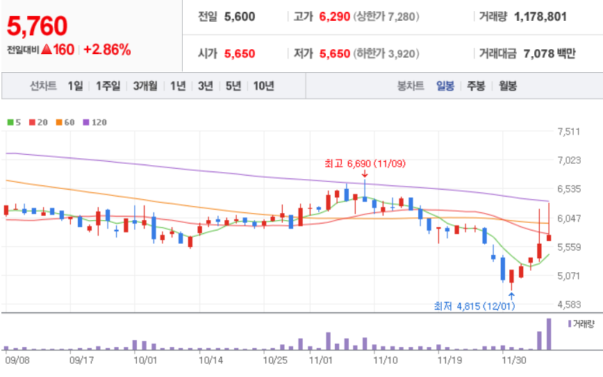 포스코엠텍 - 일봉 / 네이버금융 참고