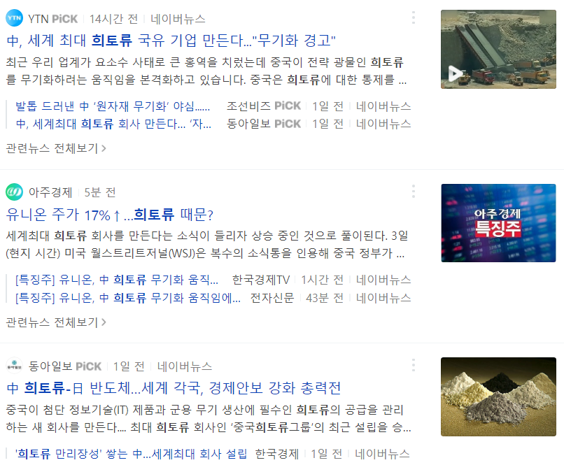 희토류 관련주에 대해 정리해 보도록 하겠습니다.