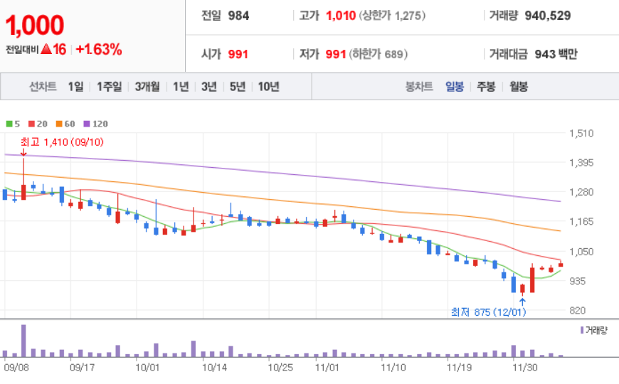 유니온머티리얼 - 일봉 / 네이버금융 참고