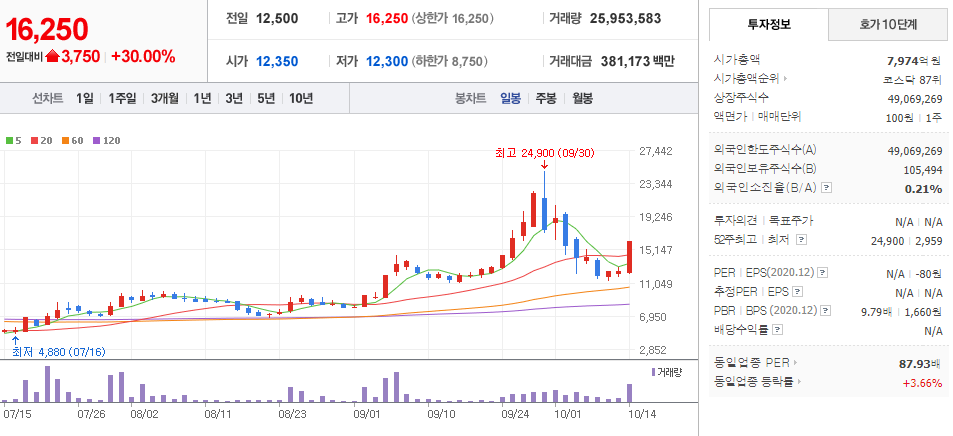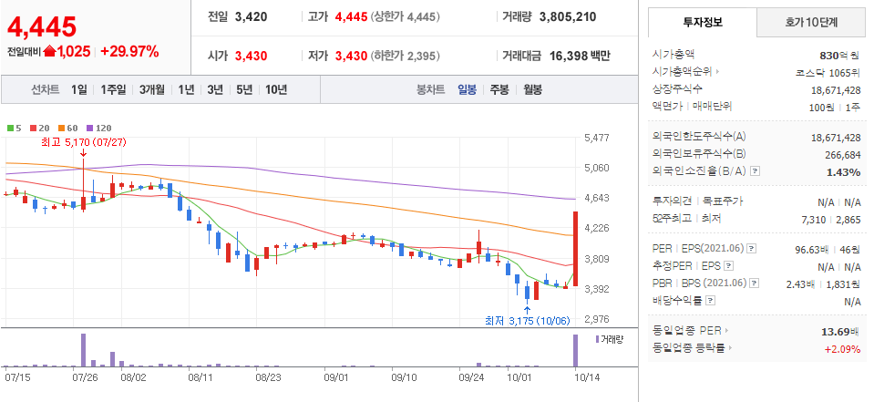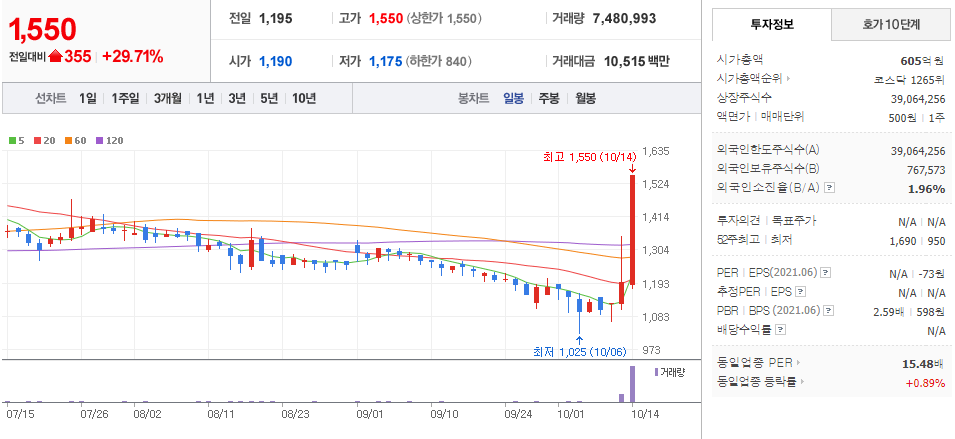 10월 14일 장 중 특징주