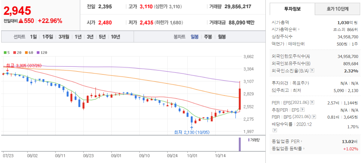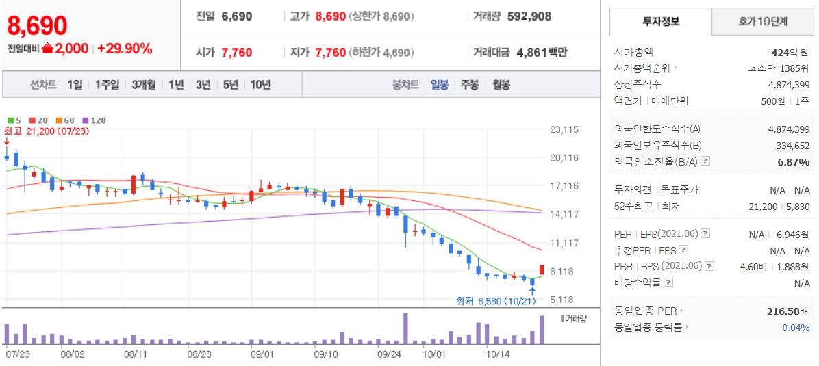 10월 22일 장중 마감 기준