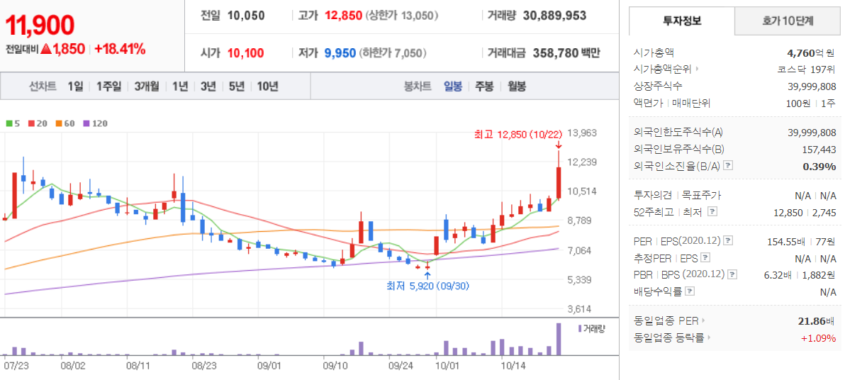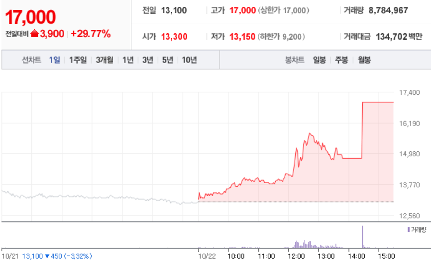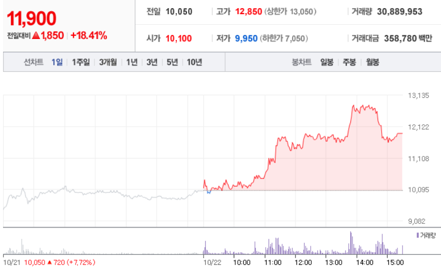 10월 22일 장 중 특징주