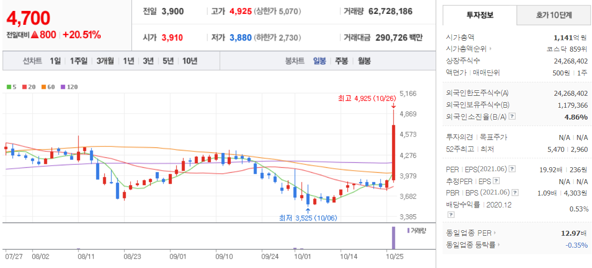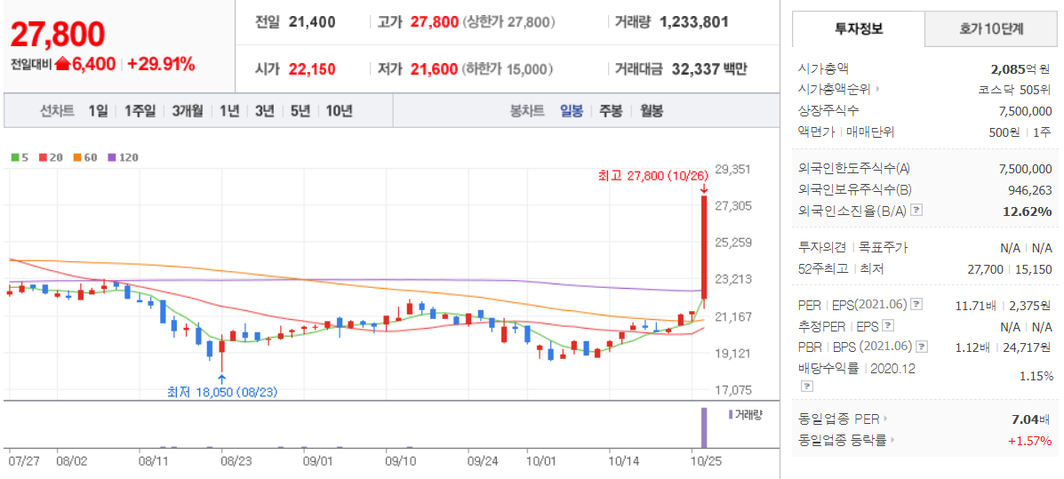 아모그린텍 ( 125210 : 코스닥 ) + 20.71 %