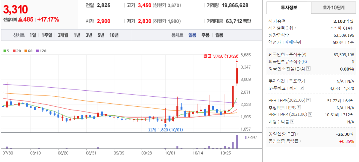 제약 바이오주 / 시총 2100억대 / 의료기기 사업