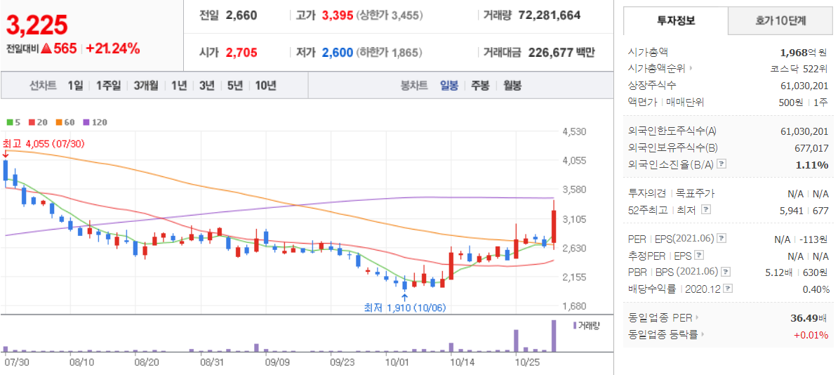 통신장비주 / 시총 6500억대 / 방송용 모니터 사업