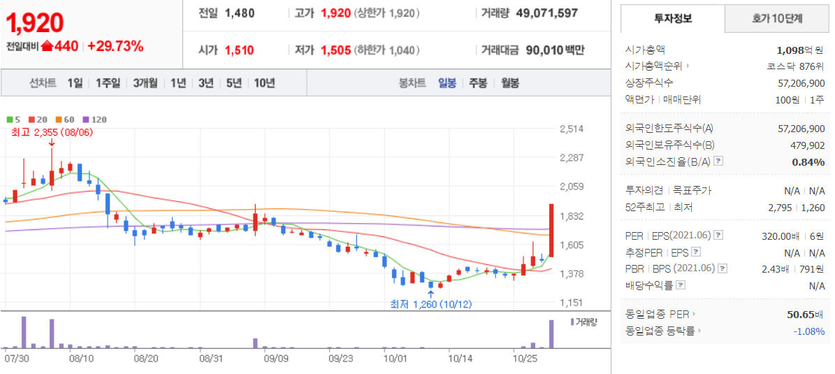 1. 쎄미시스코 ( 136510 : 코스닥 ) + 29.82%