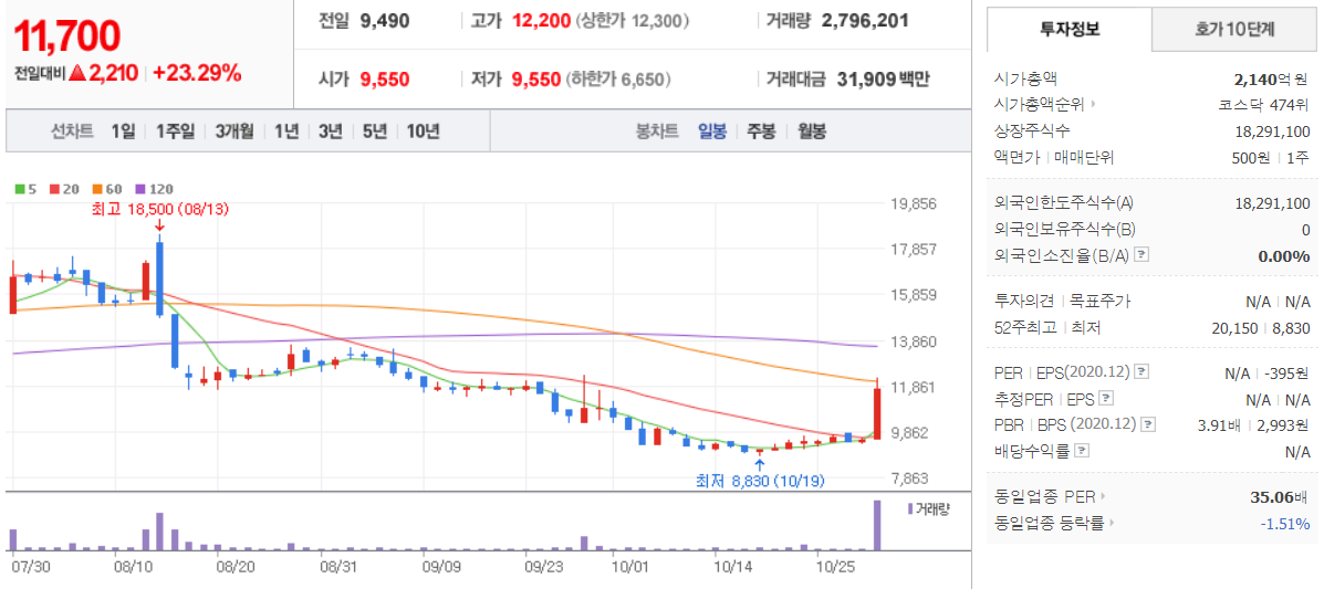 미코바이오메드 ( 214610 : 코스닥 ) + 23.29 %