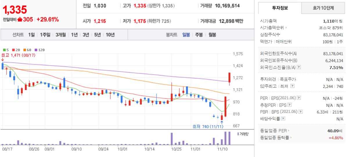 네오리진 ( 094860 : 코스닥 ) + 29.61%