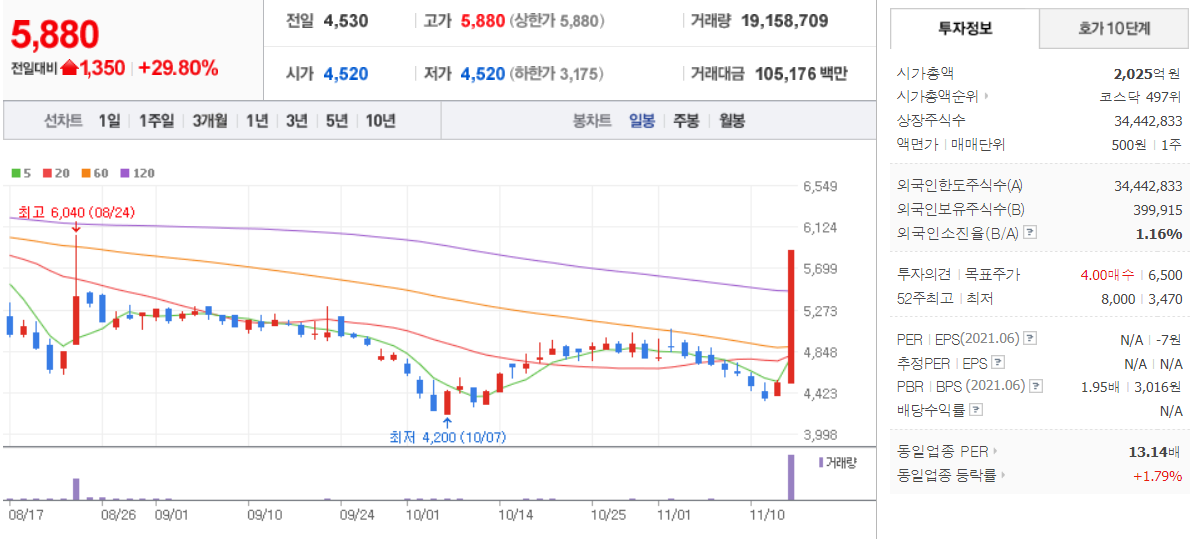 제주반도체 ( 080220 : 코스닥 ) + 29.80%