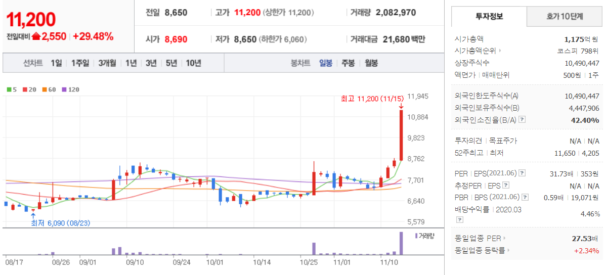 대동전자 ( 008110 : 코스피 ) + 29.48%