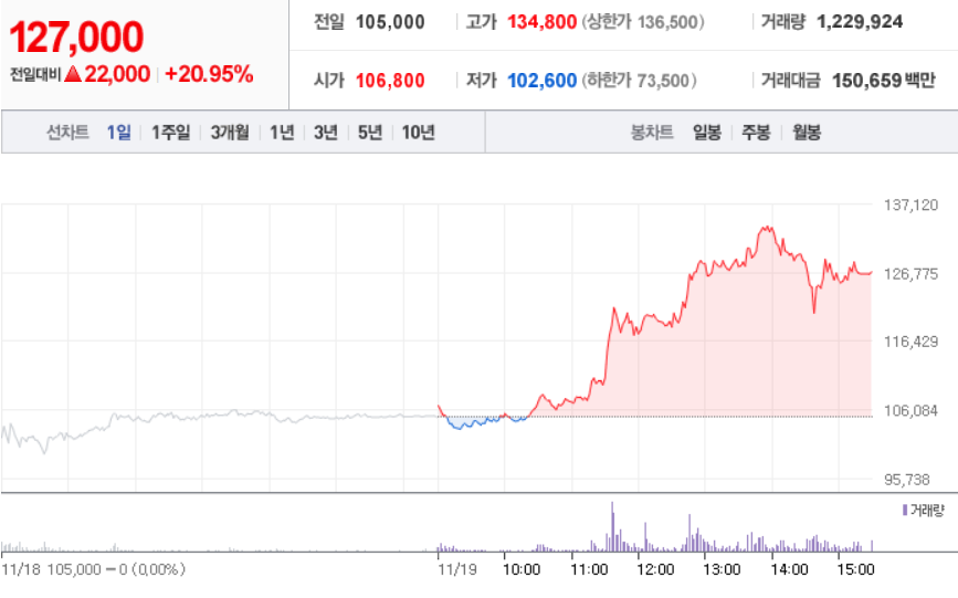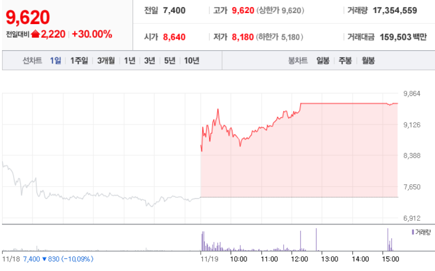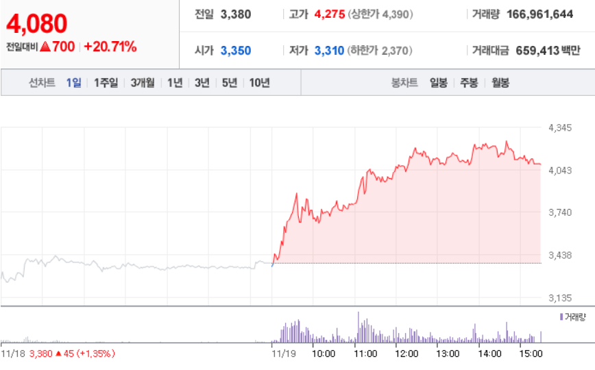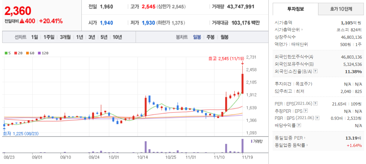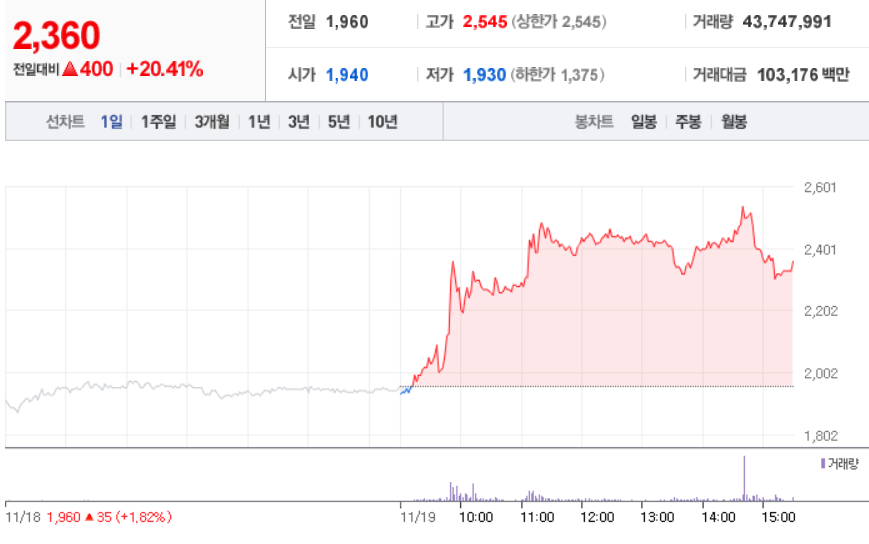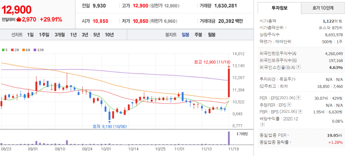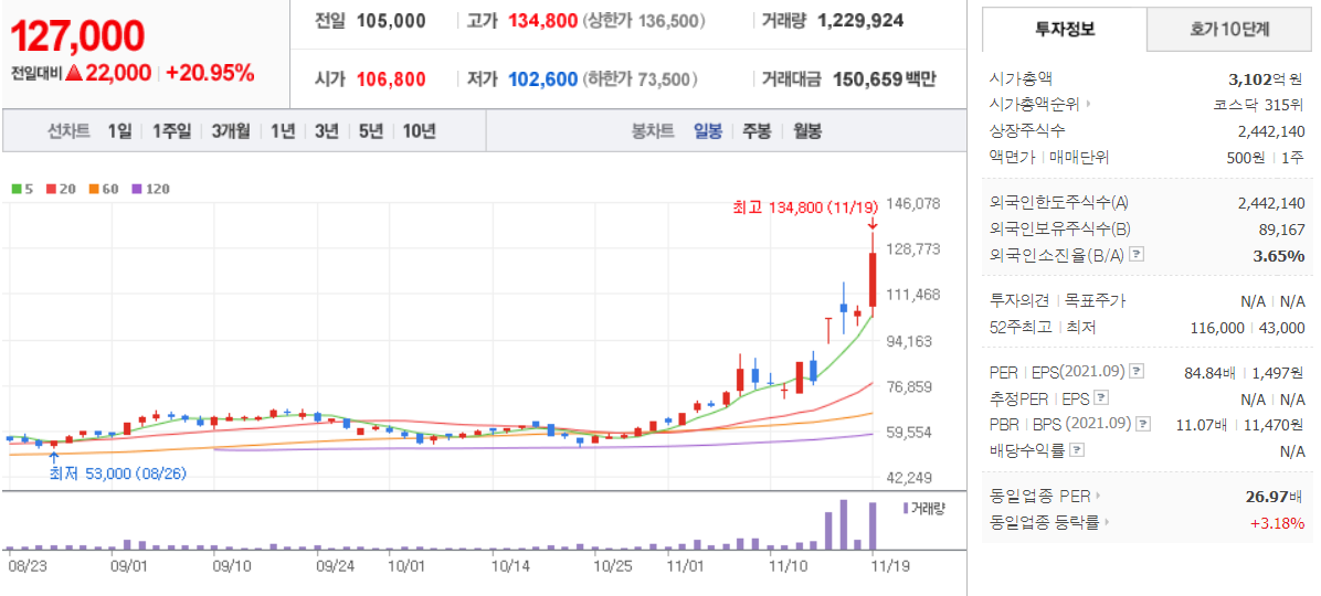 제노코 ( 361390 : 코스닥 ) + 20.95 % - 11월 19일 장 마감 기준