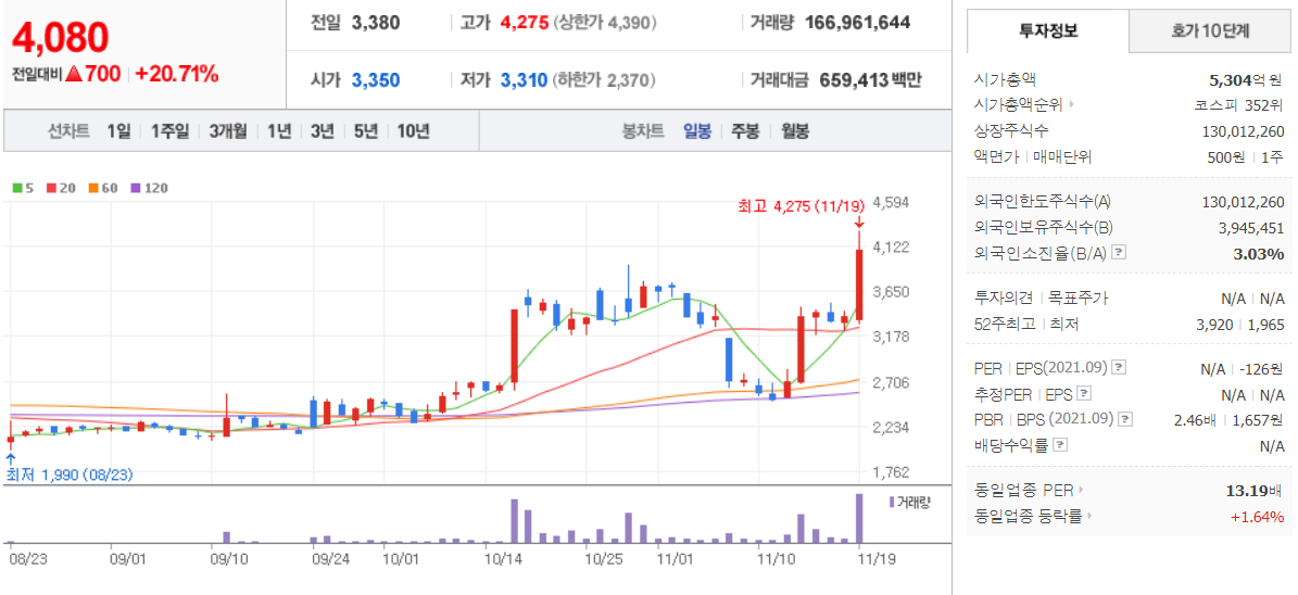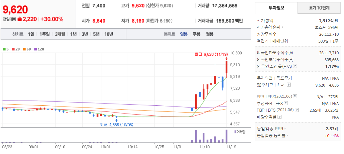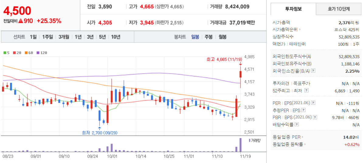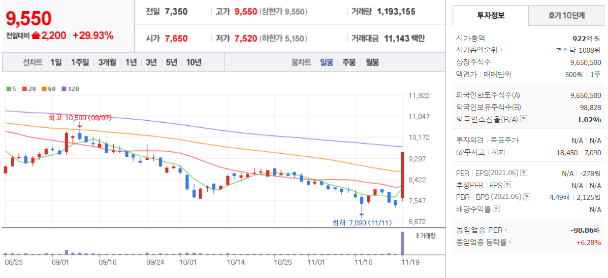 제노코 (  361390 : 코스닥 ) - 11월 19일 (1일) / 네이버금융 참고