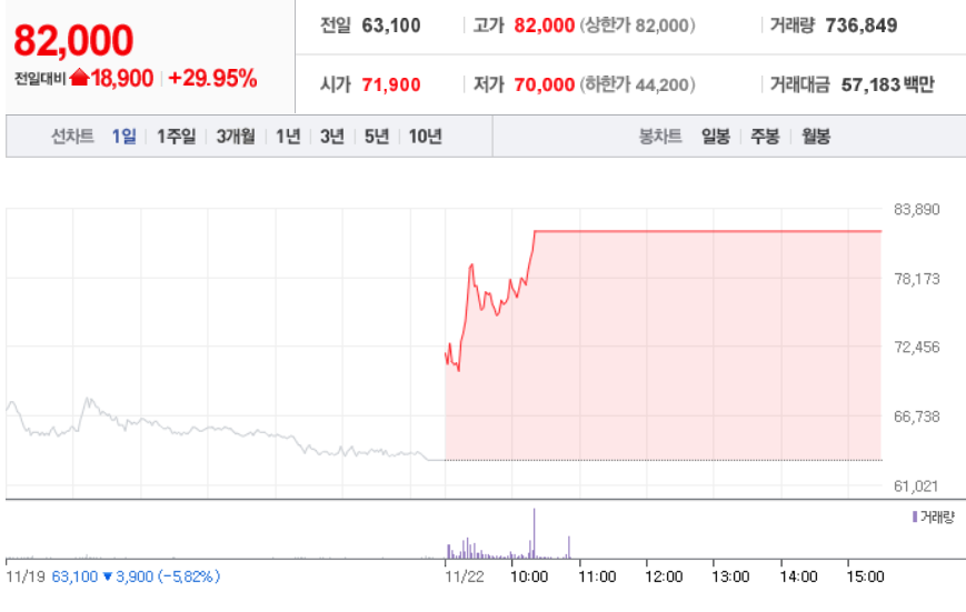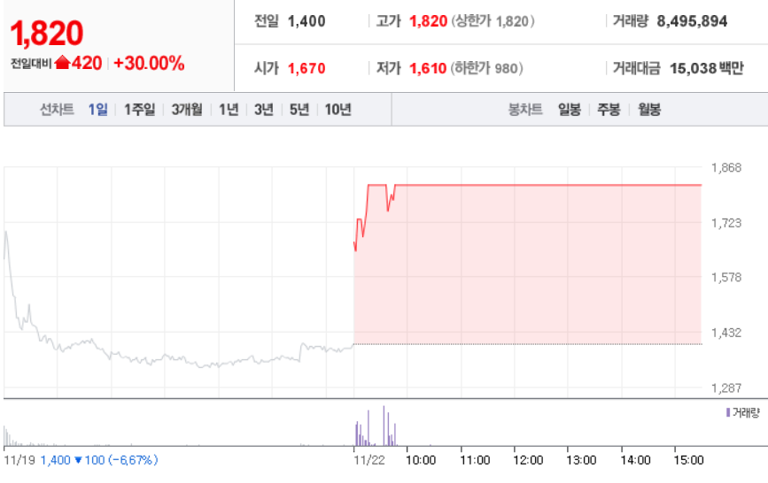 11월 22일 장 중 특징주