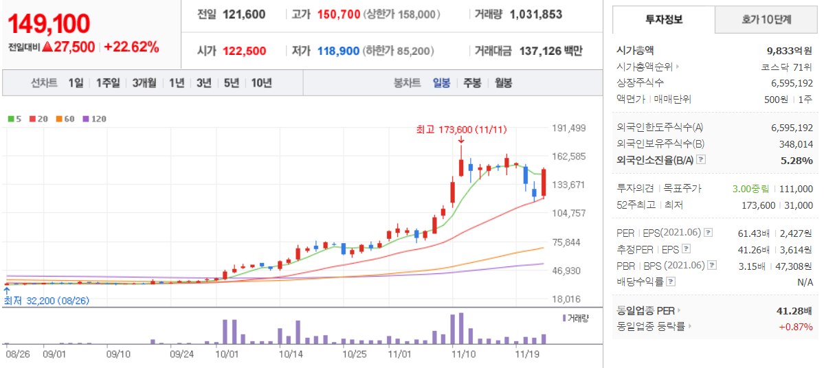 | 11월 22일 장 중 특징주 (0) | 2021.11.22 |
