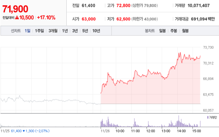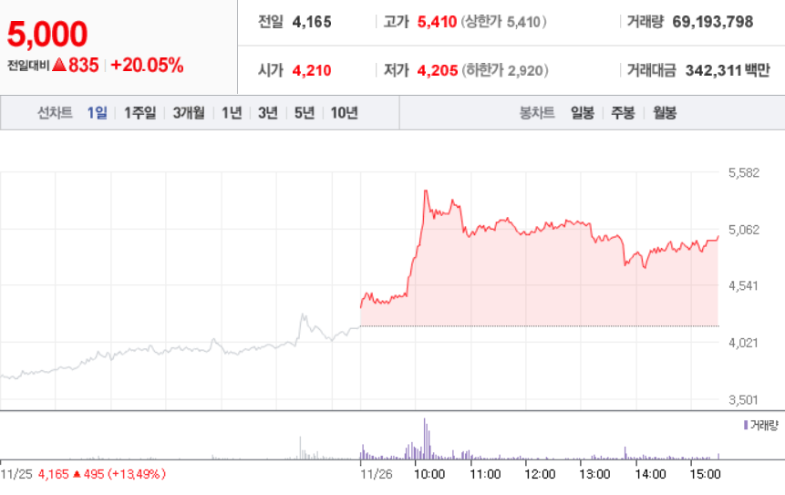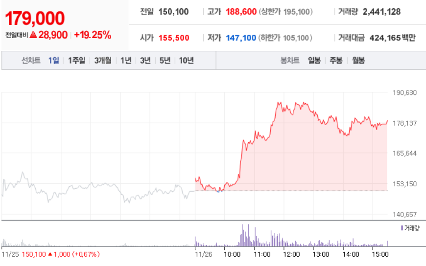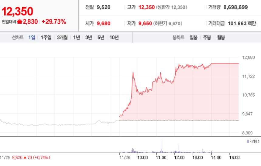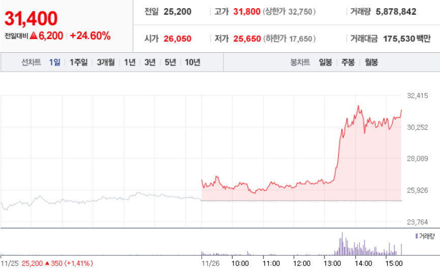 11월 26일 장 중 특징주