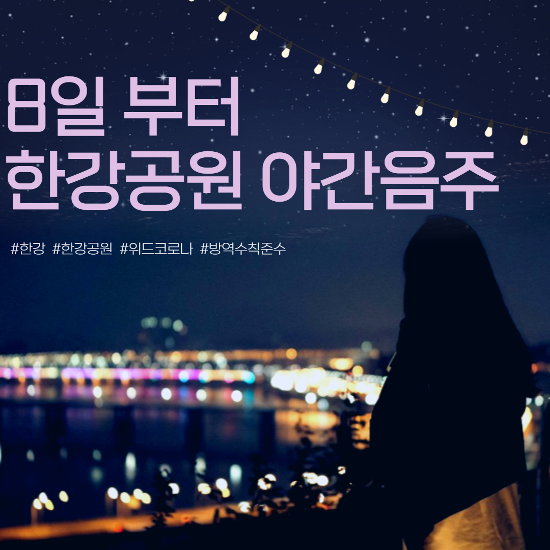 코로나로 인하여 지금까지도 서울시내 한강공원은 야간 음주가 금지되어 있었습니다.
