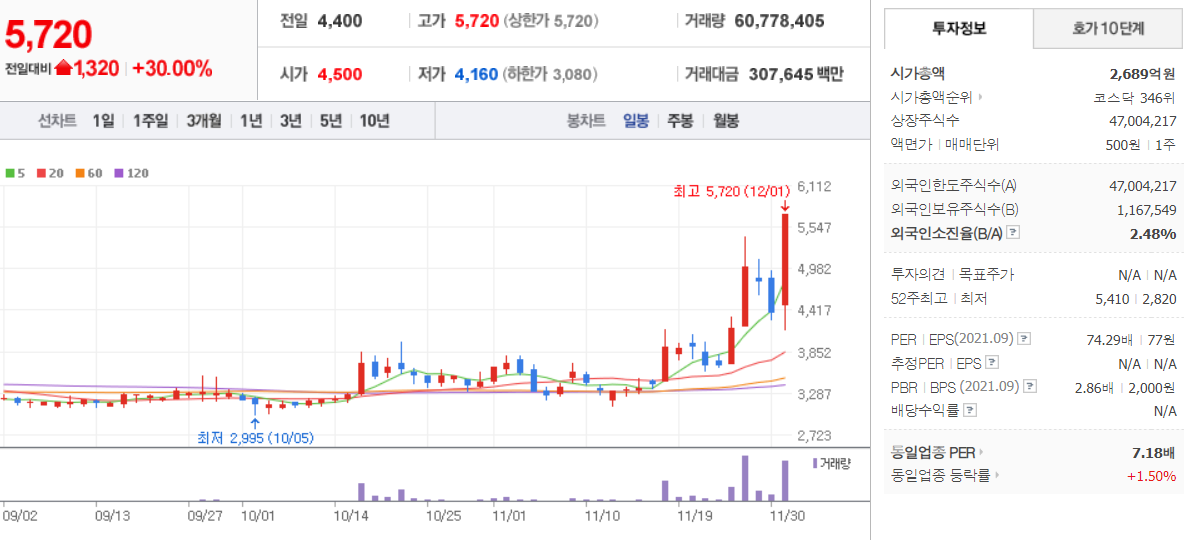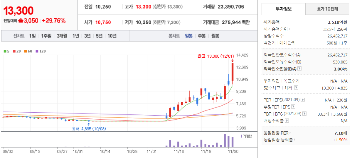 | 11월 30일 장 중 특징주 (0) | 2021.11.30 |