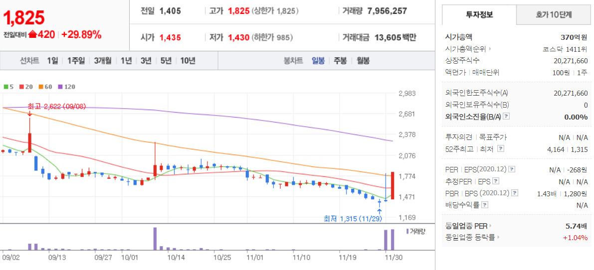 핑거 - 12월 1일 (1일) / 네이버금융 참고