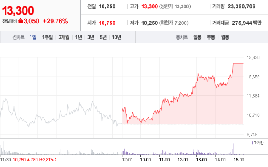 12월 1일 장 중 특징주