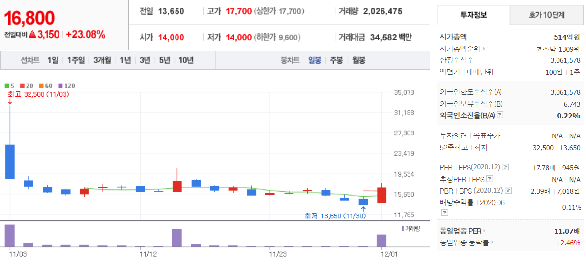 램테크놀러지 - 12월 1일 (1일) / 네이버금융 참고