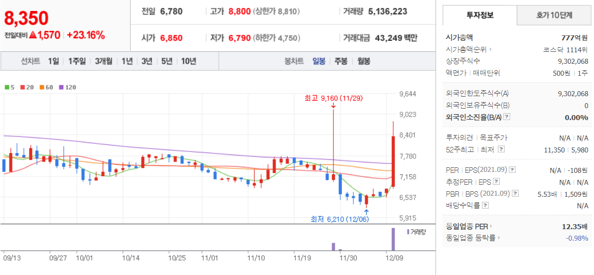120% 무상증자 결정 소식 부각