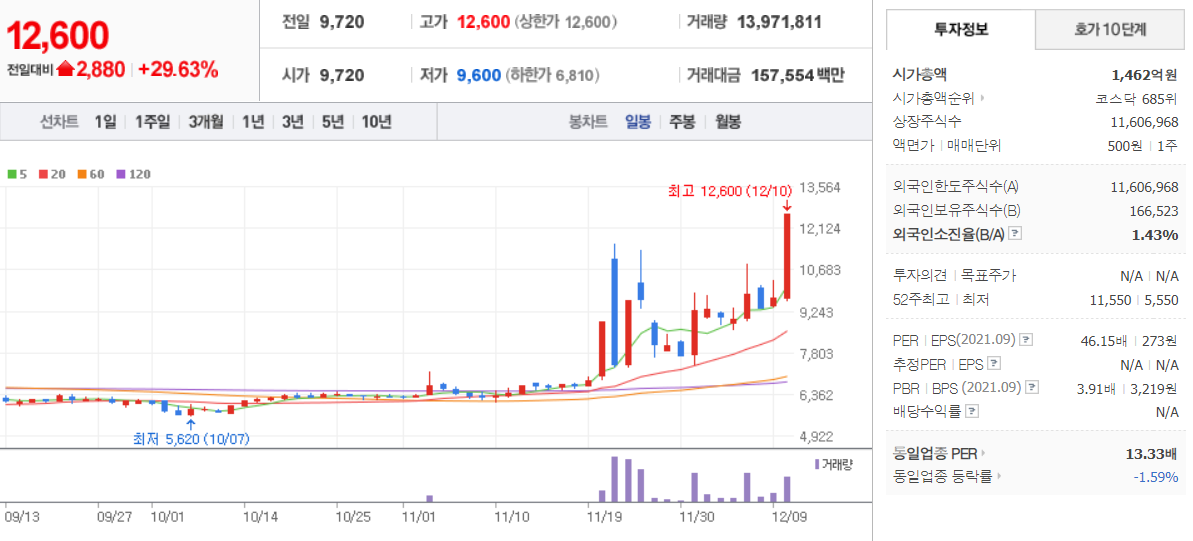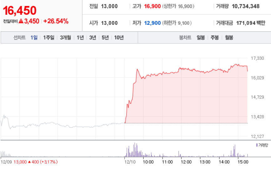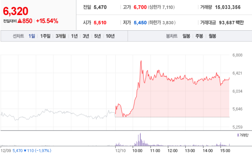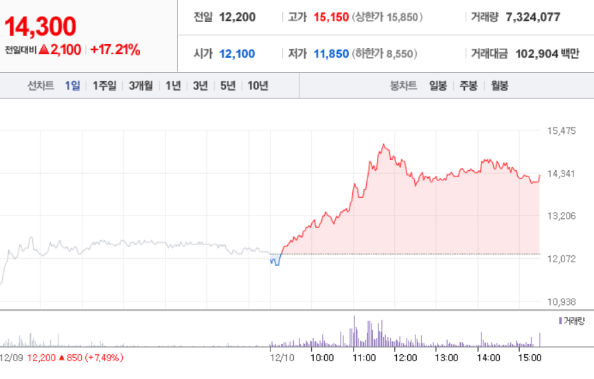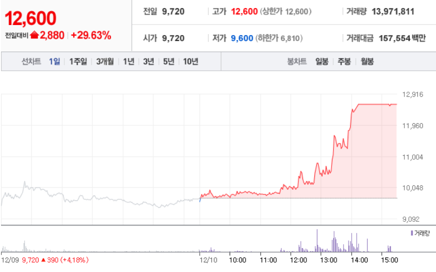 12월 10일 장 중 특징주