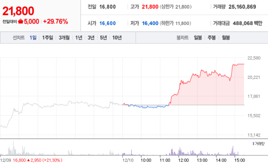 NHN벅스 ( 104200 : 코스닥 ) + 29.76 % - 12월 10일 장 마감 기준