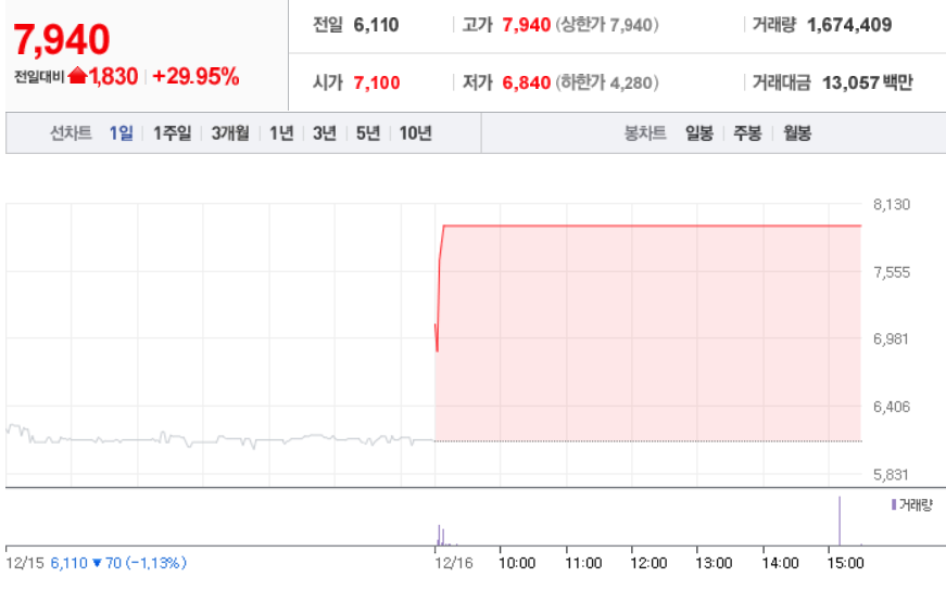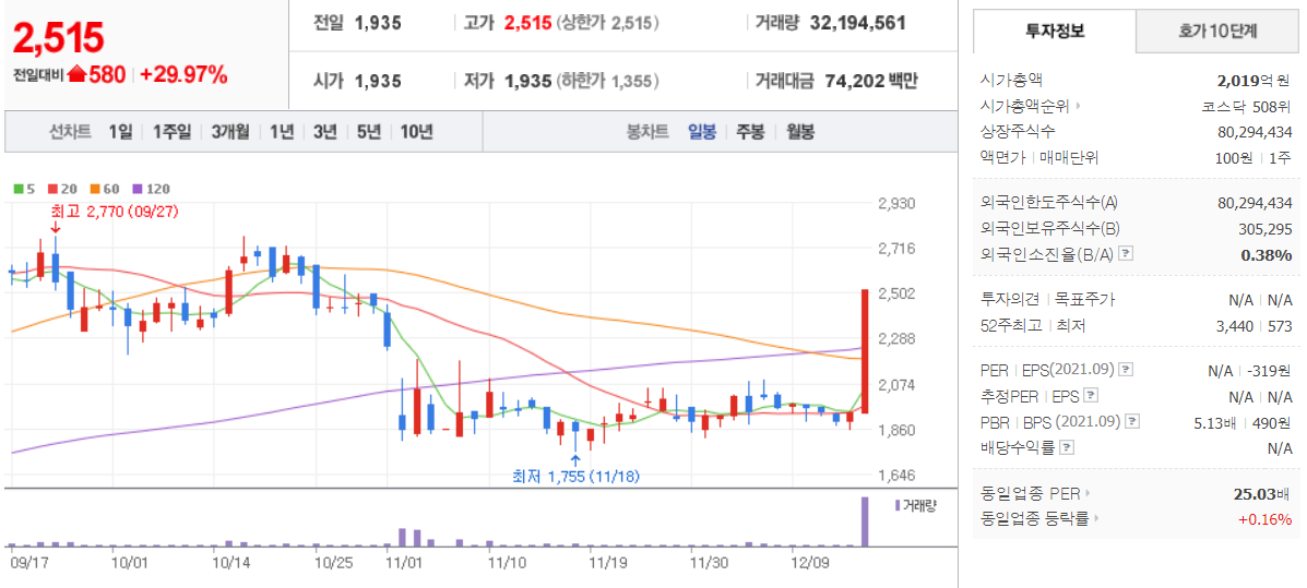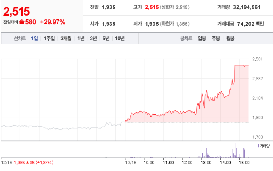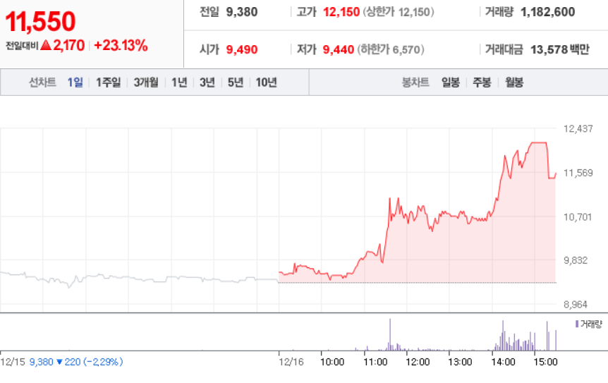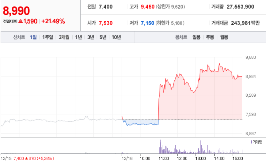 코이즈 ( 121850 : 코스닥 ) + 29.91 % - 12월 16일 장 마감 기준