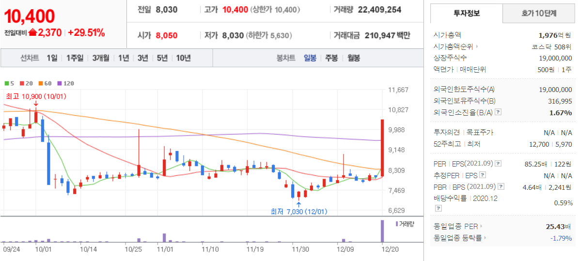 코이즈 ( 121850 : 코스닥 ) + 29.98 %