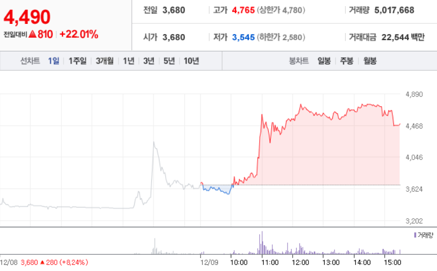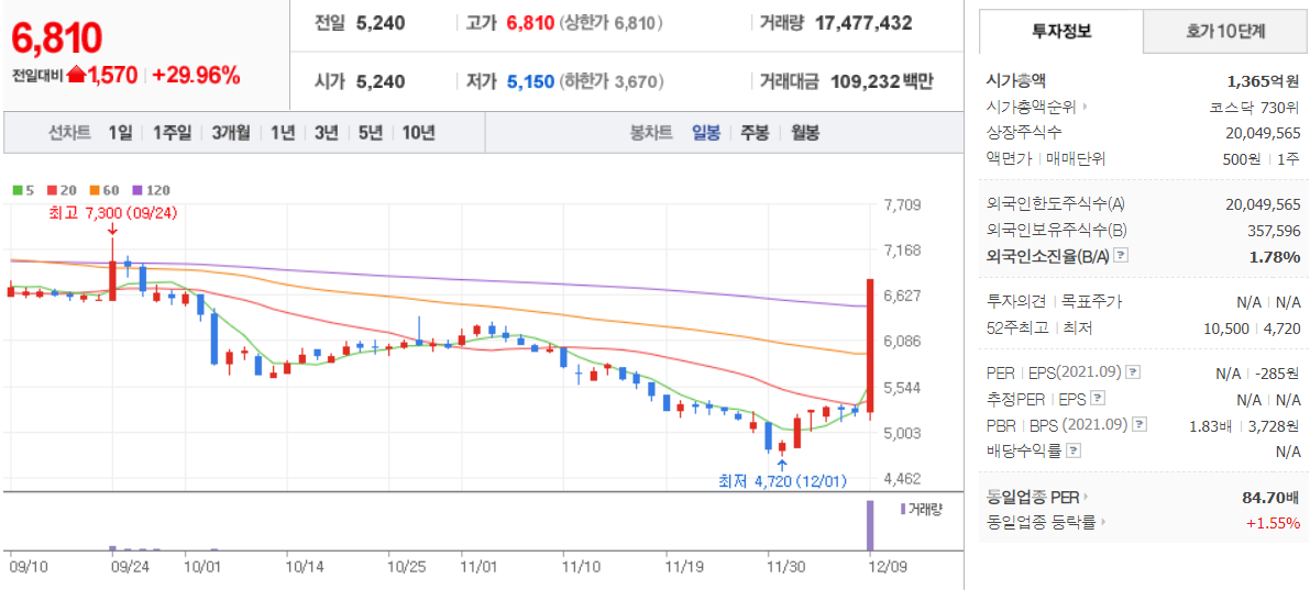경남제약 - 12월 9일 (1일) / 네이버금융 참고