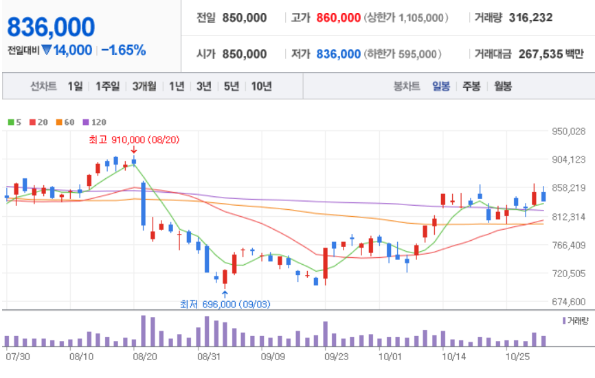 10월 29일 장 마감 기준
