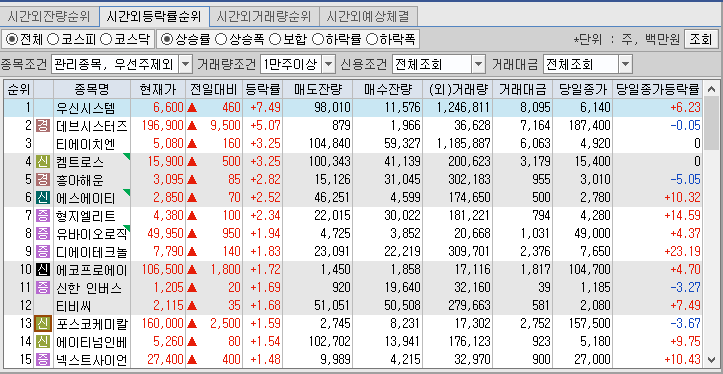 2021.10.08 시간외 특징주
